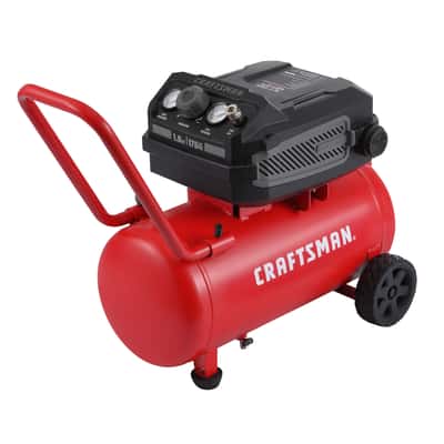Craftsman air compressor 20 gallon oil free 1 8 hp max 175 psi pressure two quick couplers big capacity red cmxecxa0232043 4 0 out of 5 stars 21 421 10 421. Features quick connects so you can switch rapidly between pneumatic tools. Sold by vir ventures. Pancake compressor maximizes portability and stored air.