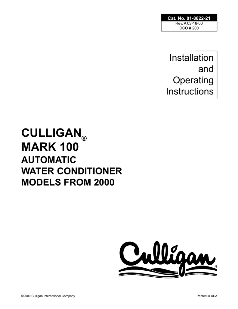 Contaminant rejection guidelines h 52 h 53 h 82 h 83. How to replace your seals in a culligan water softener. Videos tutorials documents manuals culligan fully automatic mark 5 commercial water softeners. 00881597 dco 1191 2000 culligan international company printed in usa rev.